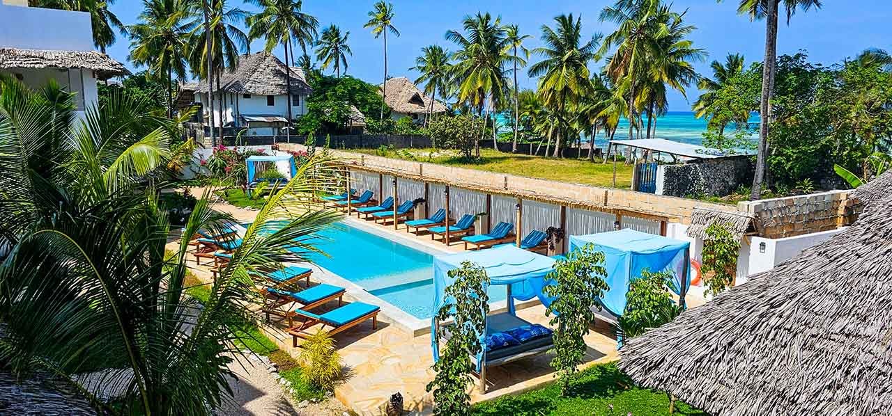 Pingwe Beach is one of the most captivating and authentic locations on Zanzibar’s east coast. Stretching over three kilometers of fine white sand, the beach is framed by palm trees and turquoise waters, offering long seaside walks, direct contact with local life and a rare sense of calm.